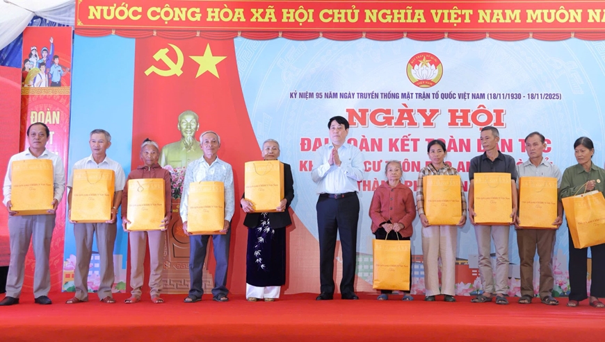 Sáng 18-11, nhân kỷ niệm 95 năm Ngày truyền thống Mặt trận Tổ quốc Việt Nam (18-11-1930 / 18-11-2025), Chủ tịch nước Lương Cường đã tới dự và phát biểu tại Ngày hội Đại đoàn kết toàn dân tộc năm 2025 ở thôn Bảo An (xã Gò Nổi, TP Đà Nẵng).