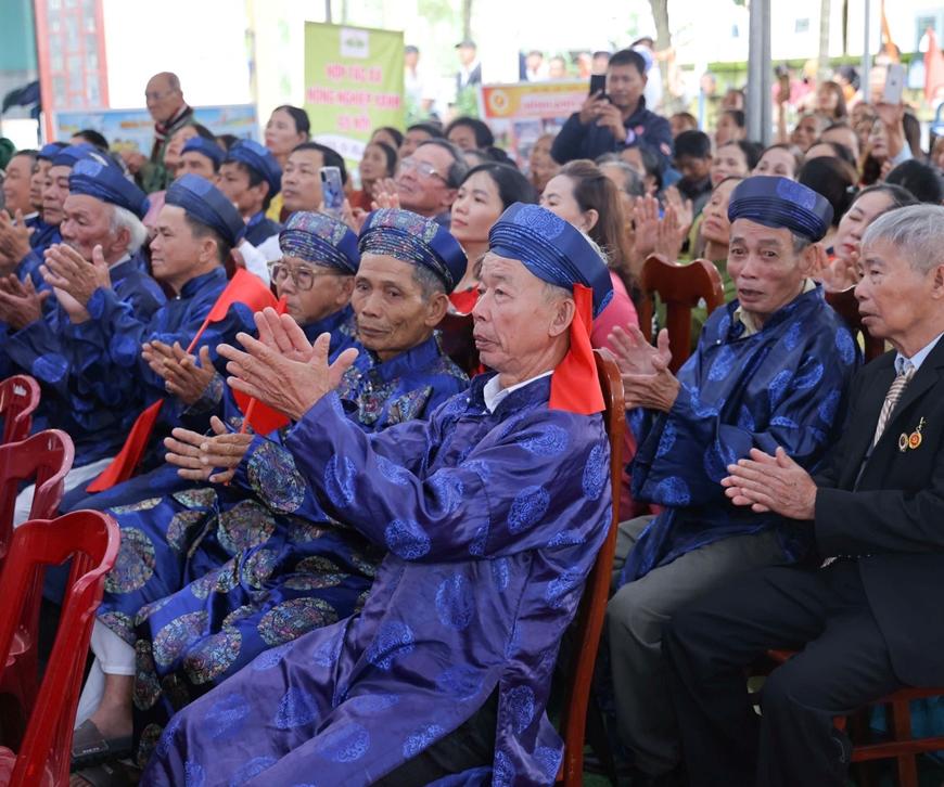 Các cụ cao tuổi và nhân dân thôn Bảo An dự Ngày hội Đại đoàn kết toàn dân tộc.