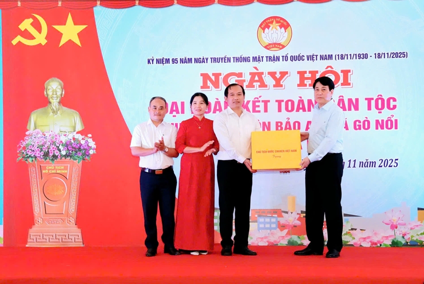 Tại ngày hội, thay mặt lãnh đạo Đảng, Nhà nước, Chủ tịch nước Lương Cường trao tặng kinh phí 20 tỷ đồng đến Đảng bộ, chính quyền và nhân dân TP Đà Nẵng góp phần giúp thành phố khắc phục kịp thời các thiệt hai do thiên tai gây ra; tặng quà đến Đảng bộ, chính quyền, nhân dân xã Gò Nổi và 17 thôn của xã, tặng quà thôn Bảo An, 10 gia đình chính sách tiêu biểu. Các đồng chí lãnh đạo Đảng, Chính phủ, Quốc hội, Ủy ban Trung ương Mặt trận Tổ quốc Việt Nam tặng quà chính quyền, nhân dân xã Gò Nổi có hoàn cảnh khó khăn, chịu ảnh hưởng của thiên tai...