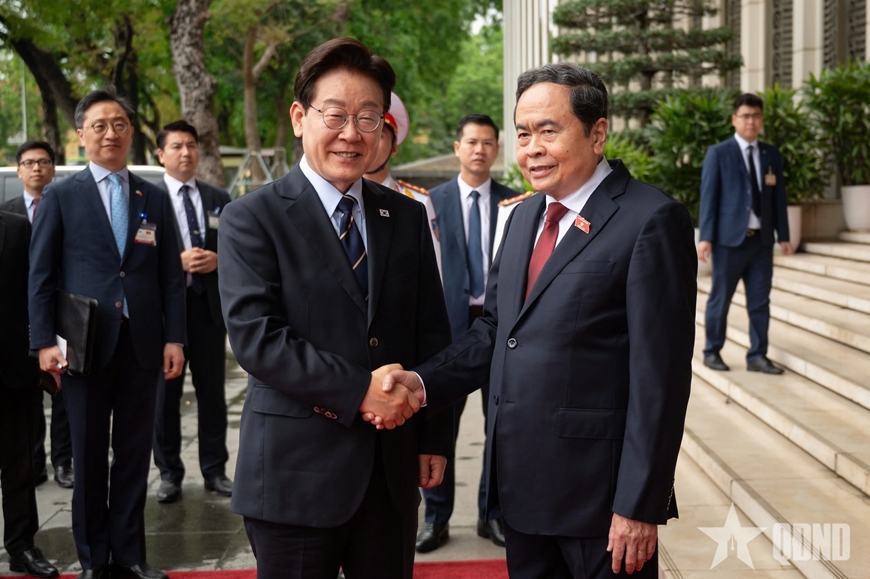 | Chủ tịch Quốc hội Trần Thanh Mẫn đón Tổng thống Hàn Quốc Lee Jae Myung. |