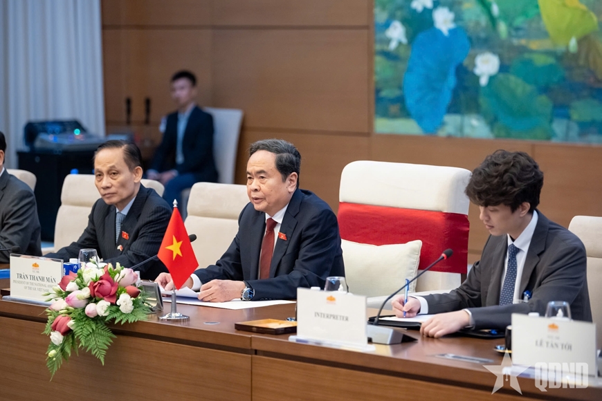 | Chủ tịch Quốc hội Trần Thanh Mẫn phát biểu tại cuộc hội kiến. |
