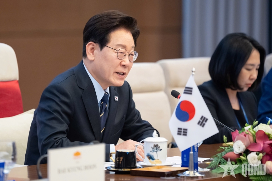 | Tổng thống Hàn Quốc Lee Jae Myung phát biểu tại cuộc hội kiến. |