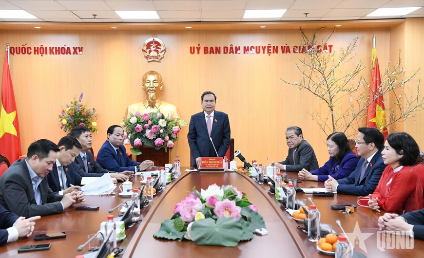 Phát biểu tại cuộc làm việc với Ủy ban Dân nguyện và Giám sát, Chủ tịch Quốc hội Trần Thanh Mẫn ghi nhận, nhiệt liệt biểu dương những nỗ lực, kết quả đạt được của Ủy ban Dân nguyện và Giám sát, đồng thời tin tưởng tập thể Ủy ban sẽ tiếp tục phát huy tinh thần đoàn kết, đổi mới, hoàn thành xuất sắc nhiệm vụ trong thời gian tới.