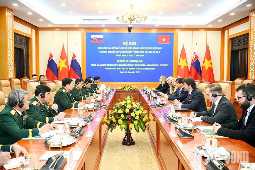 Sáng 18-11, tại trụ sở Bộ Quốc phòng, ngay sau lễ đón trọng thể, Đại tướng Phan Văn Giang, Ủy viên Bộ Chính trị, Phó bí thư Quân ủy Trung ương, Bộ trưởng Bộ Quốc phòng đã hội đàm với Phó thủ tướng, Bộ trưởng Bộ Quốc phòng Slovakia Robert Kalinak.