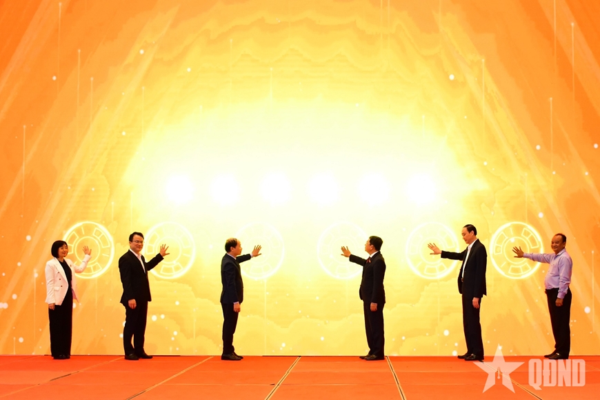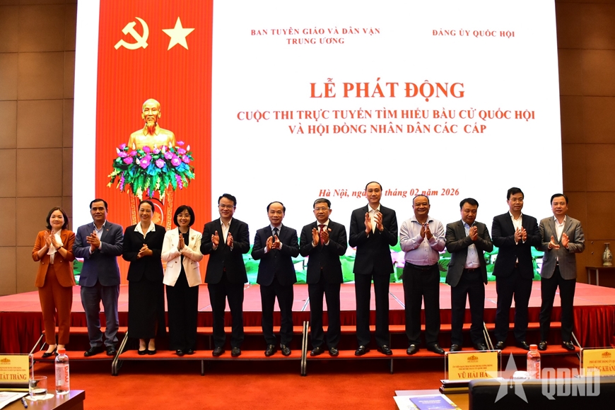 Các đại biểu tiến hành nghi thức phát động cuộc thi trắc nghiệm trực tuyến tìm hiểu bầu cử đại biểu Quốc hội. |