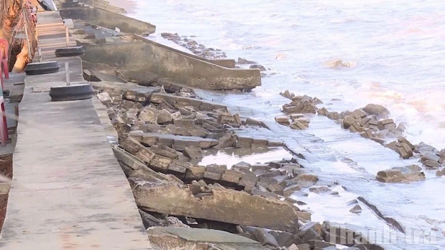 Trước đó, do ảnh hưởng của các cơn bão số 5, số 10 năm 2025, mưa lớn sau bão và các đợt gió mạnh trên biển, kết hợp với sóng lớn, triều cường dâng cao trong thời gian vừa qua đã làm tuyến kè bờ biển thuộc các thôn Trung Hải, Quang Trung (xã Hoằng Thanh) bị sụt lún chân kè, mái kè, đường giao thông bên trong bờ kè bị sạt lở tại nhiều vị trí. Các vị trí sạt lở, hư hỏng phát triển nhanh, lấn sâu vào tuyến đường giao thông ven biển (gắn liền với tuyến kè biển) làm tuyến đường và các hạng mục phụ trợ bị hư hỏng nặng. Trong đó, một số vị trí bị sóng biển đánh trực tiếp đã lấy đi lượng cát lớn trong thân kè và nền đường, khiến thân kè và nền đường bị rỗng, gây mất an toàn cho người và phương tiện tham gia giao thông.