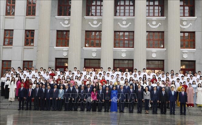 Tổng Bí thư, Chủ tịch nước xúc động chia sẻ bồi hồi nhớ lại lời căn dặn của Chủ tịch Hồ Chí Minh trong chuyến thăm Trường Dục Tài năm 1957: Thế hệ trẻ phải biết trân trọng, biết ơn sự giúp đỡ của bạn bè quốc tế; phải ra sức học tập, rèn luyện, giữ gìn phẩm chất khiêm tốn, cần cù và có tinh thần trách nhiệm với Tổ quốc. Khẩu hiệu "Đoàn kết - Học tập - Tiến bộ - Phục vụ" do Chủ tịch Hồ Chí Minh trực tiếp xác định không chỉ là phương châm giáo dục mà còn là hệ giá trị cốt lõi, bền vững đối với mọi thế hệ.