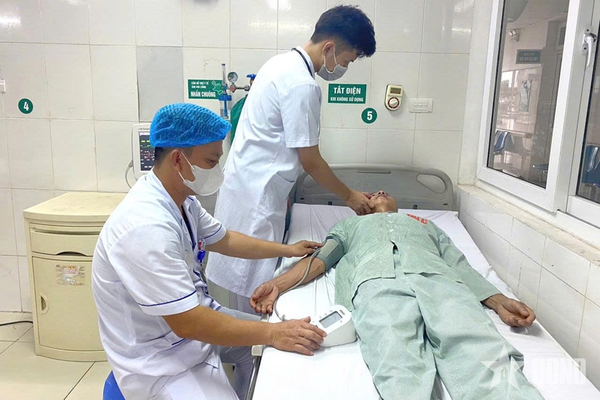 Trung tá, TS Nguyễn Đăng Hải thăm khám cho bệnh nhân điều trị tại Khoa Đột quỵ, Bệnh viện Quân y 103, Học viện Quân y. Ảnh: TUẤN THÀNH