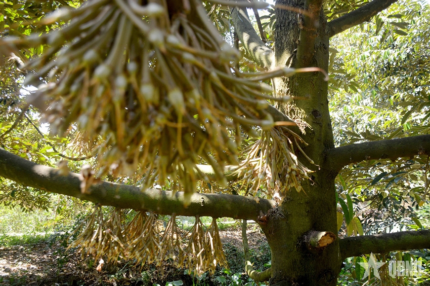 | Sầu riêng đang ra hoa (bông) tại vườn sầu riêng xã An Bình, tỉnh Vĩnh Long. |