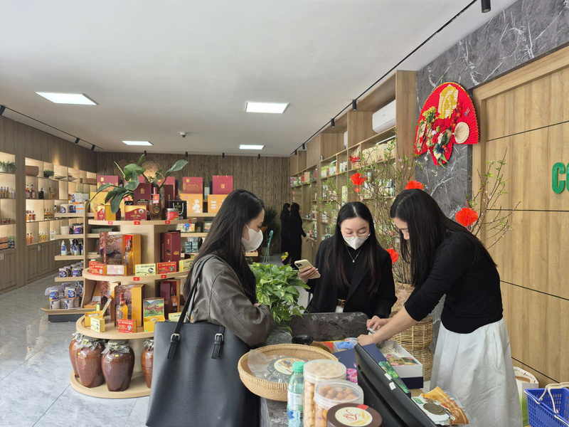 Cận Tết Nguyên đán, các cửa hàng giới thiệu sản phẩm OCOP và thị trường thực phẩm truyền thống tại Nghệ An trở nên sôi động.