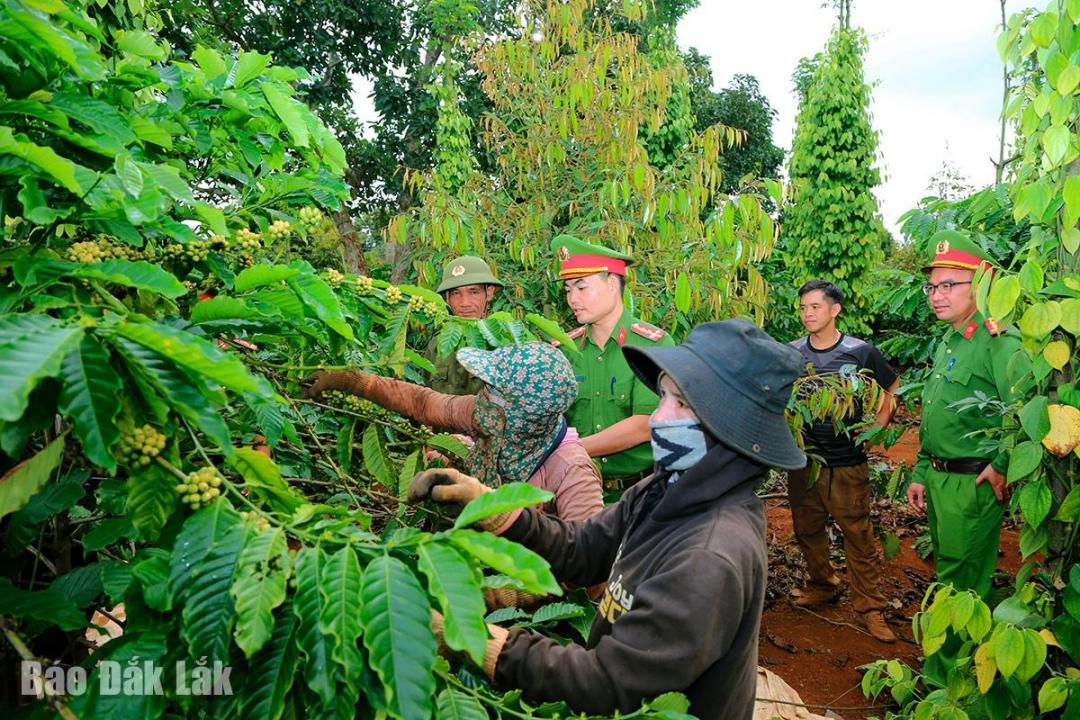 Công an huyện Krông Năng thường xuyên tuần tra, kiểm soát địa bàn để bảo đảm an ninh trật tự mùa thu hoạch cà phê. |
