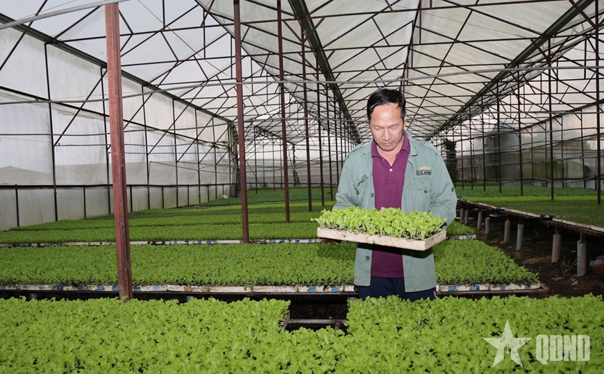 | Ông Nguyễn Thanh Hải, chủ 1 vườn ươm tại xã D'ran chuẩn bị giống rau cung cấp cho người trồng rau sau lũ. |