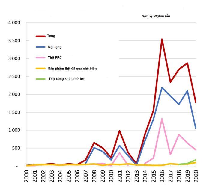 Xuất khẩu thịt heo từ Pháp sang Việt Nam qua các năm – Nguồn: IFIP