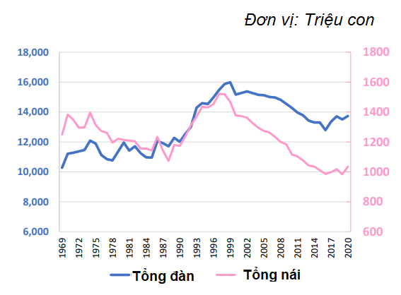 Diễn biến đàn heo tại Pháp qua các mốc thời gian – Nguồn: IFIP theo Eurostat