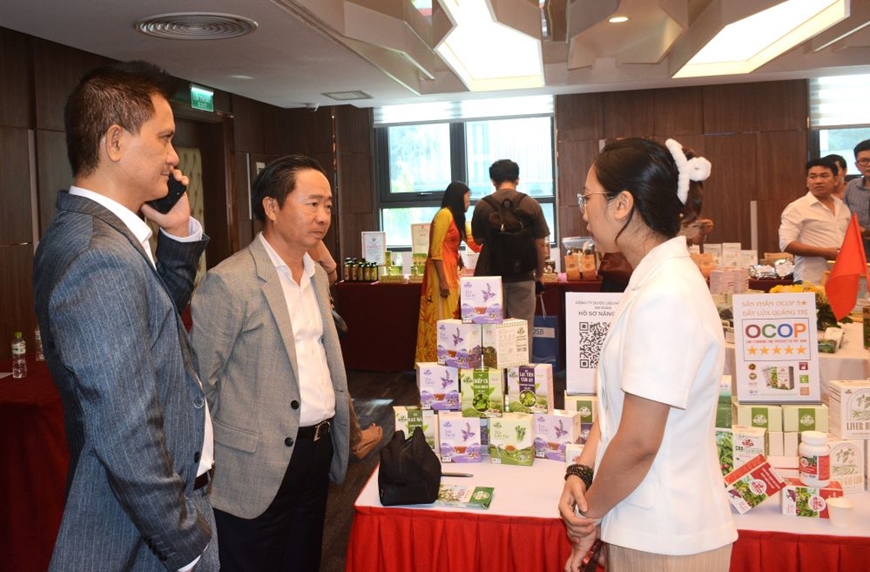 Các đối tác, doanh nghiệp ở TP Hồ Chí Minh tìm hiểu, trao đổi với doanh nghiệp sản xuất, phân phối sản phẩm OCOP tỉnh Quảng Trị. |