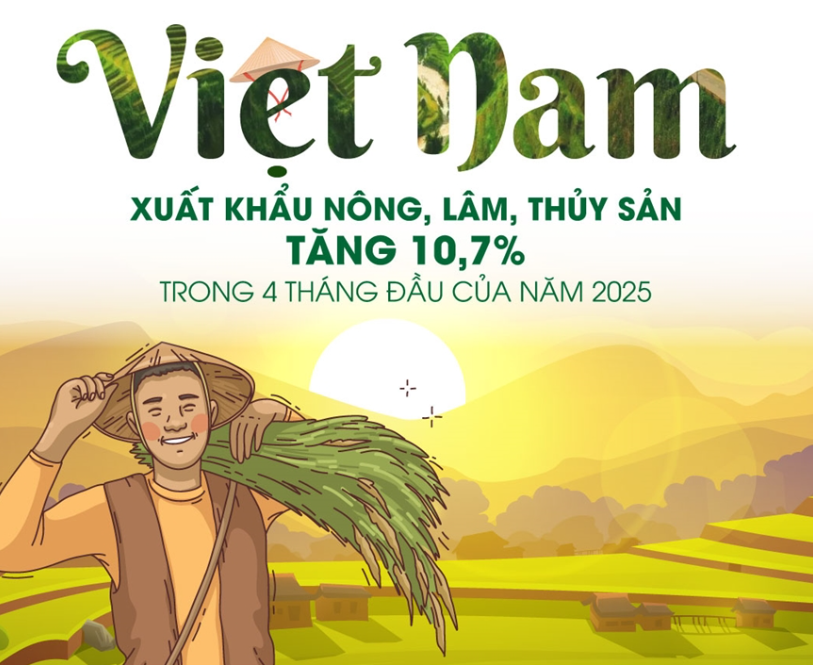 Theo Bộ Nông nghiệp và Môi trường, 4 tháng năm 2025, tổng kim ngạch xuất khẩu nông, lâm, thủy sản đạt 21,15 tỷ USD - tăng 10,7% so với cùng kỳ năm 2024. Trong đó, nông sản đạt 11,6 tỷ USD, lâm sản đạt 5,56 tỷ USD, thủy sản đạt 3,09 tỷ USD, sản phẩm chăn nuôi 178 triệu USD…