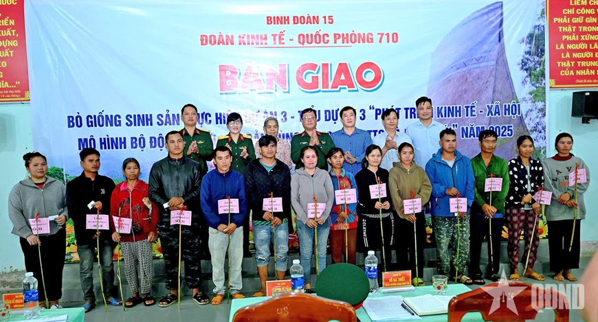 Đoàn Kinh tế - Quốc phòng 710 (Binh đoàn 15) trao bò giống tặng 34 hộ nghèo, cận nghèo
