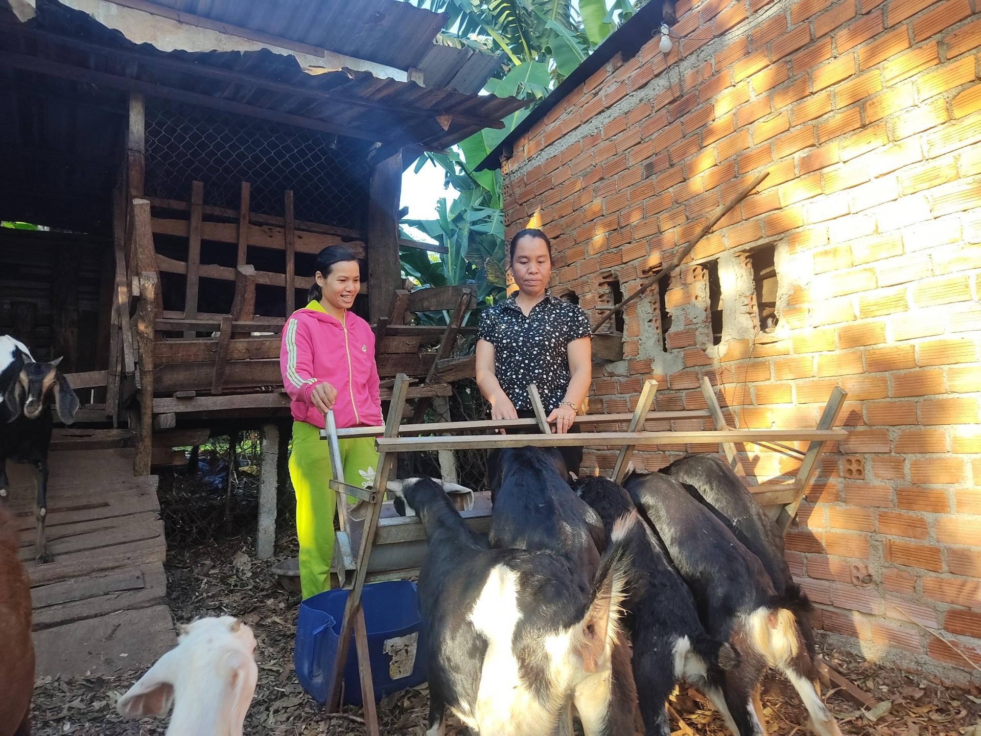 Nhờ tiết kiệm trong chi tiêu, năm 2017 gia đình chị vay mượn mua thêm được 6 sào rẫy trồng cà phê xen hồ tiêu và một số loại cây ăn quả khác. Năm 2019 chị còn chăn nuôi dê với số lượng đàn hiện nay hơn 20 con, trong đó có 13 con dê cái sinh sản.