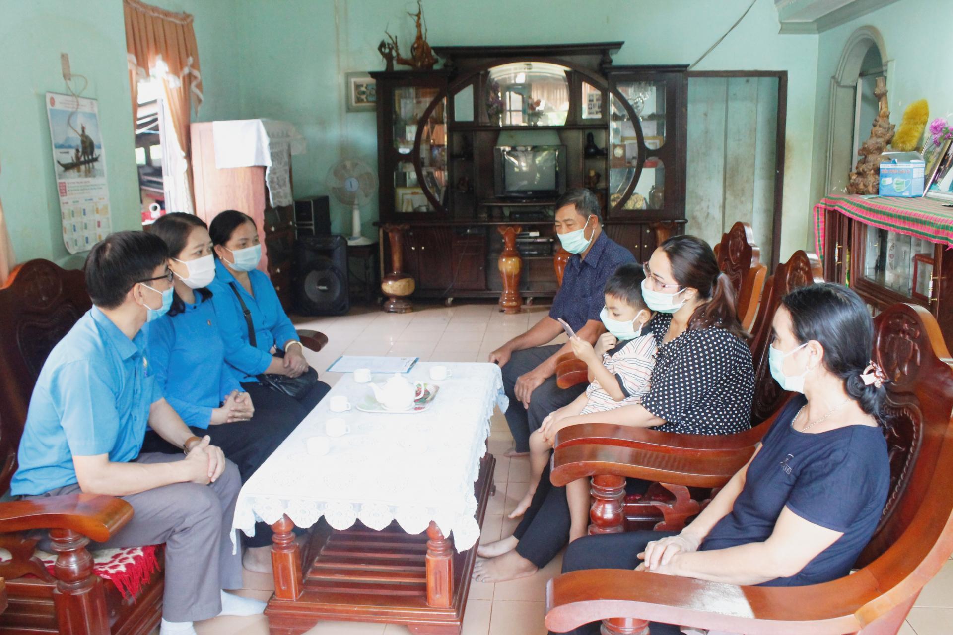 | Lãnh đạo Liên đoàn Lao động tỉnh đến thăm hỏi gia đình đoàn viên bị tai nạn lao động. |