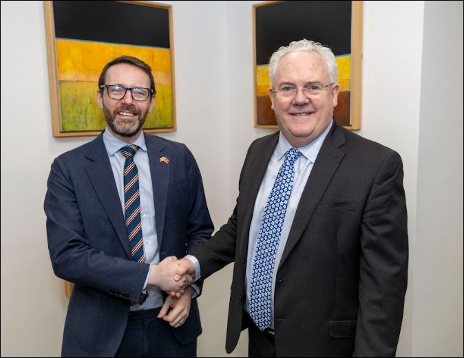 Đại sứ Anh tại Việt Nam Iain Frew (bên trái) và Giáo sư Gerry McCormac, Phó hiệu trưởng Đại học Stirling. Ảnh: Đại sứ quán Anh |