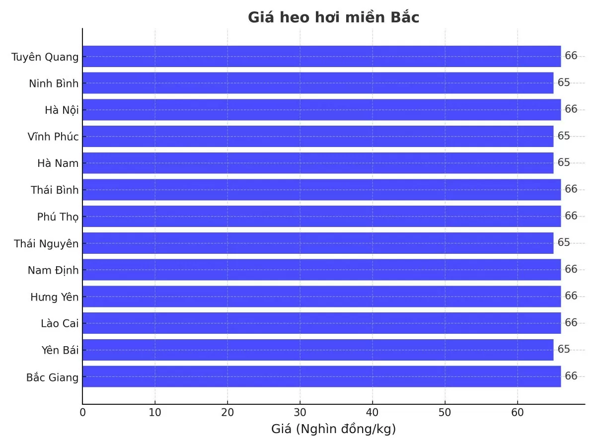 Lào Cai, Hưng Yên, Nam Định, Thái Bình, Hà Nội và Tuyên Quang có mức giá 66.000 đồng/kg, thấp hơn so với một số ngày trước đó.