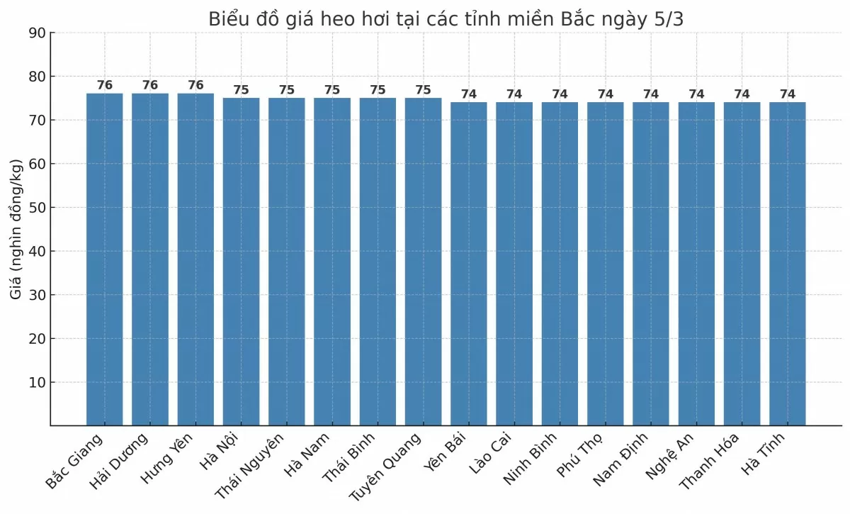 Biểu đồ giá heo hơi tại các tỉnh miền Bắc ngày 5/3. |