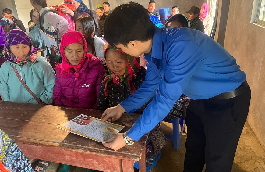 | Nhân dịp này, cán bộ, trí thức trẻ tình nguyện Đoàn Kinh tế-Quốc phòng 345 tổ chức tuyên truyền, giáo dục, phổ biến pháp luật cho nhân dân trên địa bàn. |