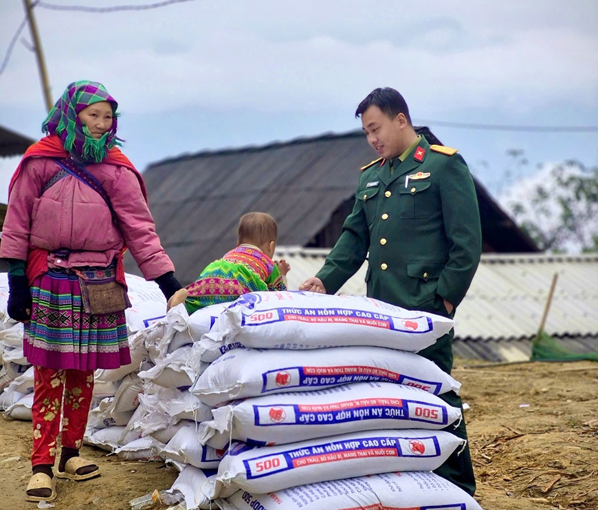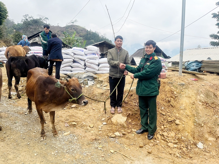 Ngày 26-1, tại các xã Cao Sơn, Pha Long (tỉnh Lào Cai), Đoàn Kinh tế-Quốc phòng (KTQP) 345 (Quân khu 2 ) tổ chức cấp phát 78 con bò giống, 7.800kg cám và đá liếm khoáng (3kg/con) hỗ trợ nhân dân địa phương.