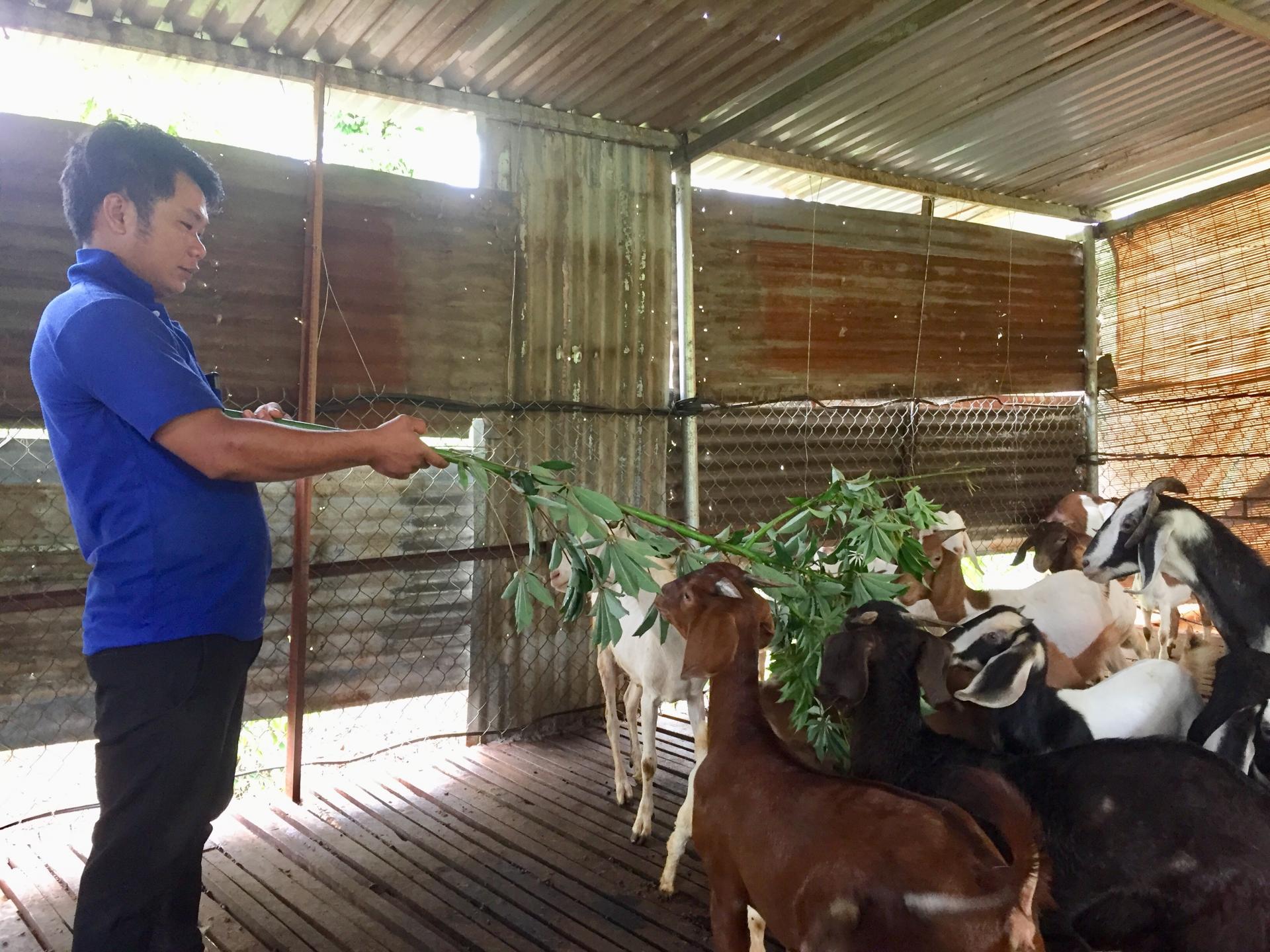 Qua nghiên cứu, anh nhận thấy việc nuôi dê có nhiều lợi ích, vừa tận dụng được cây cỏ trong vườn làm thức ăn, vừa bán dê thịt và có phân dê làm nguồn phân bón cho cây trồng.