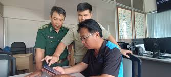 Cán bộ Văn phòng kiểm tra, kiểm soát nghề cá cảng Cát Lở (TP.Vũng Tàu) hướng dẫn chủ tàu cá khai báo thủ tục xuất bến, nhật ký khai thác điện tử trên App điện thoại di động. |