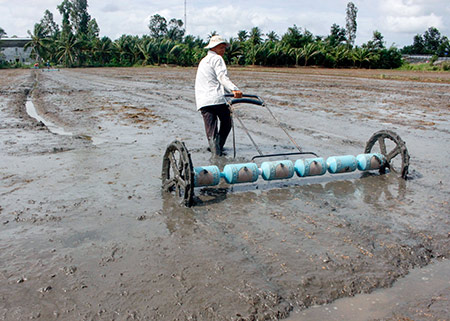 Nông dân Hậu Giang tăng cường áp dụng các biện pháp hạ giá thành sản xuất trong vụ lúa Đông xuân đang xuống giống.
