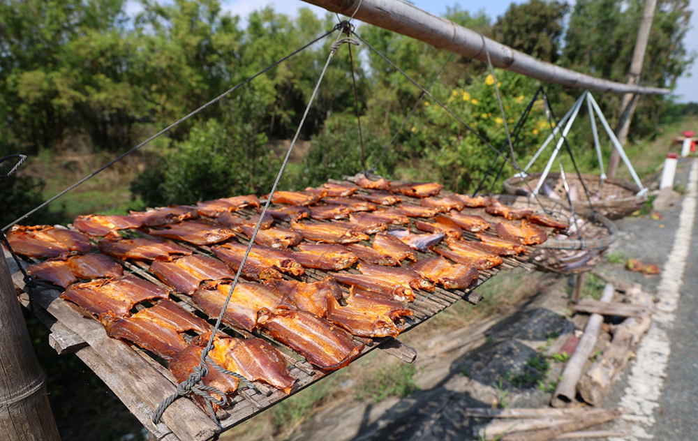 Đặc sản được đặt hàng nhiều nhất là khô cá lóc đồng, càng cận Tết số lượng càng tăng. Chị Trang có một nhà kính để phơi cá, vừa đảm bảo sạch sẽ, vừa kiểm soát nhiệt độ và độ ẩm môi trường, cho ra thành phẩm dẻo ngon. Theo nhu cầu của khách, khô cá lóc được phơi khô dẻo qua 2 nắng hoặc 3 nắng, ướp tiêu hoặc ớt. Chị chỉ bán từ mùa nước nổi đến Tết Nguyên đán.