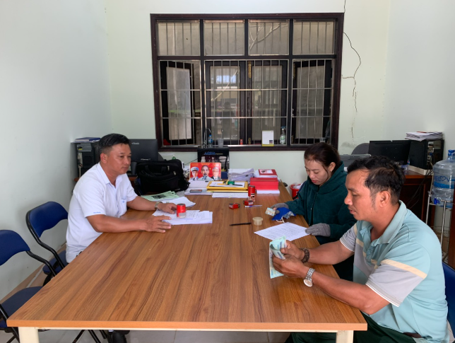| Đại diện Ban Điều hành Quỹ Hỗ trợ nông dân tỉnh giải ngân vốn vay cho hội viên nông dân xã Bàu Lâm. |
