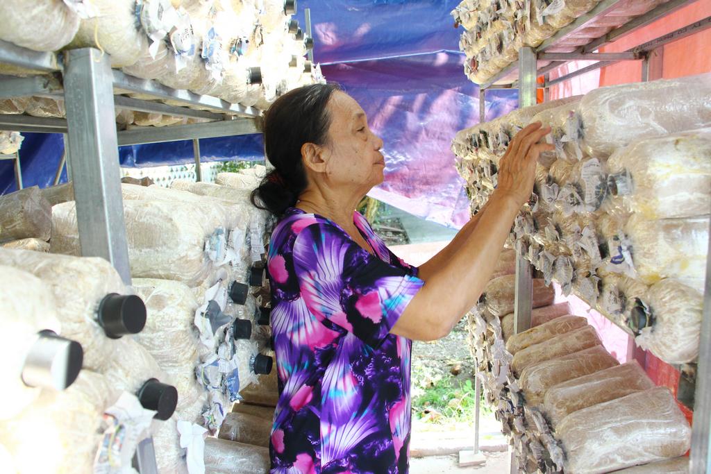 Trồng nấm bào ngư từ tháng 7/2024 đến nay, cô Trần Thị Cuốn (Khóm 1, Phường 9, TP Vĩnh Long) cho biết: “Ban đầu tôi được hỗ trợ túi phôi, kỹ thuật trồng nấm, tôi thấy mô hình dễ thực hiện. Nấm bào ngư xám này ít tốn công chăm sóc, thu hoạch thường xuyên, với giá bán lẻ 55.000- 60.000 đ/kg, gia đình tôi có thêm thu nhập ổn định”.