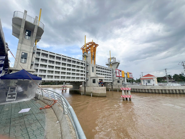 | Hệ thống thủy lợi tỉnh bảo đảm an ninh nguồn nước, ổn định sản xuất và nâng cao chất lượng sống cho người dân. Trong ảnh: Cống Cái Hàn, xã Hưng Khánh Trung. |