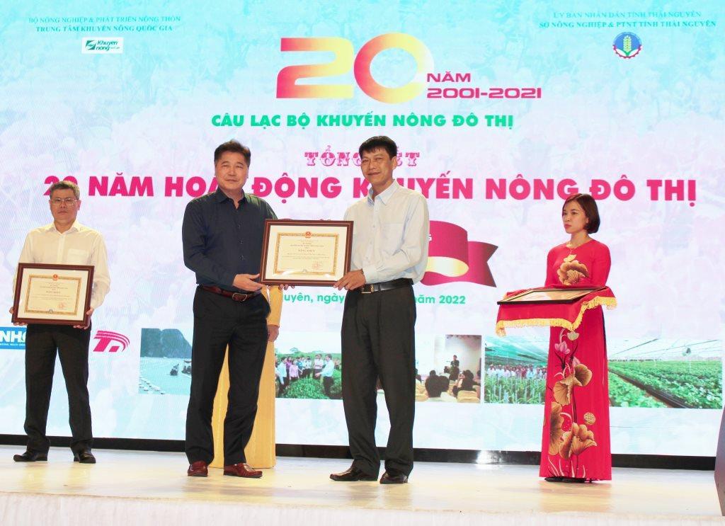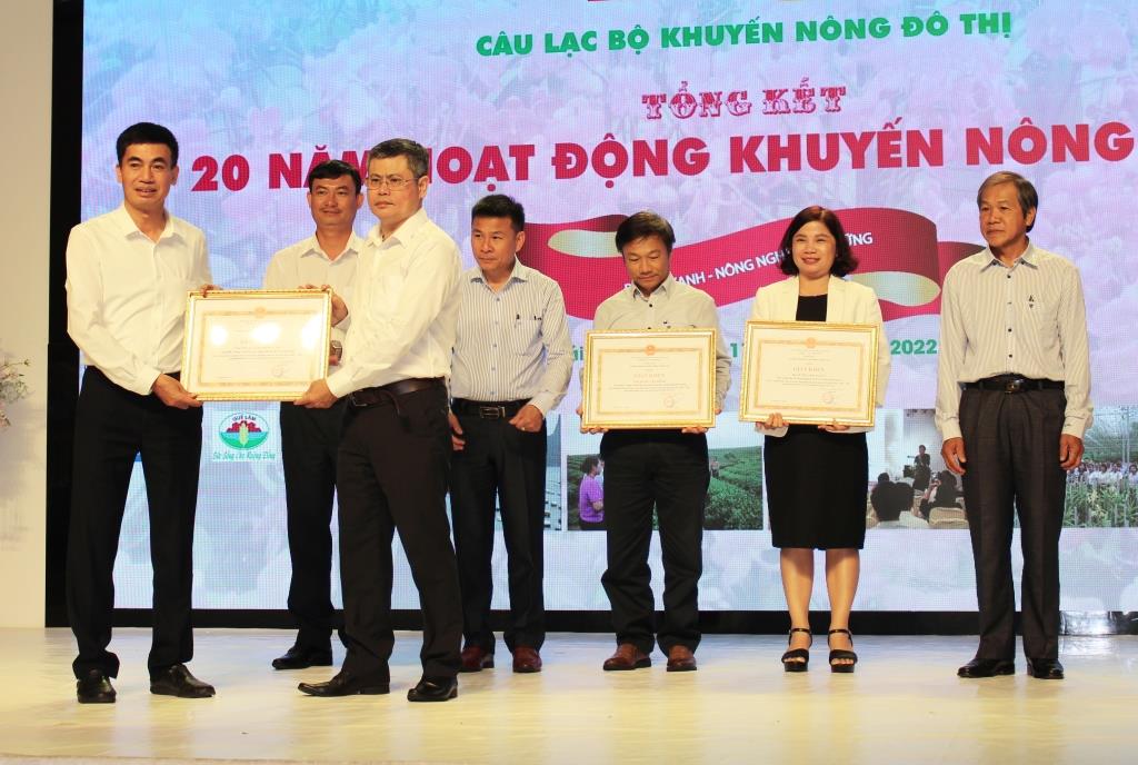 Tại hội nghị, thừa ủy quyền Bộ trưởng Bộ Nông nghiệp và PTNT, ông Lê Quốc Thanh – Giám đốc Trung tâm Khuyến nông Quốc gia đã trao Bằng khen Bộ trưởng Bộ Nông nghiệp và PTNT cho 03 tập thể và 02 cá nhân đã có thành tích xuất sắc trong 20 năm hoạt động khuyến nông đô thị. Bên cạnh đó, 13 tập thể và 16 cá nhân của câu lạc bộ được Giám đốc Trung tâm Khuyến nông Quốc gia trao tặng Giấy khen đã có thành tích xuất sắc trong hoạt động khuyến nông đô thị.