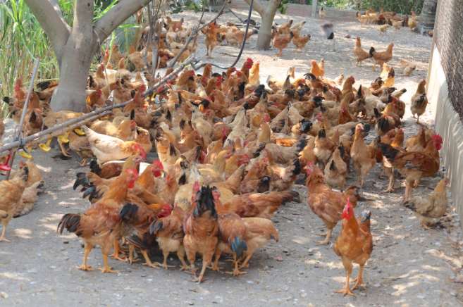 Đàn gà Lượng Huệ được nuôi theo hình thức thả vườn.