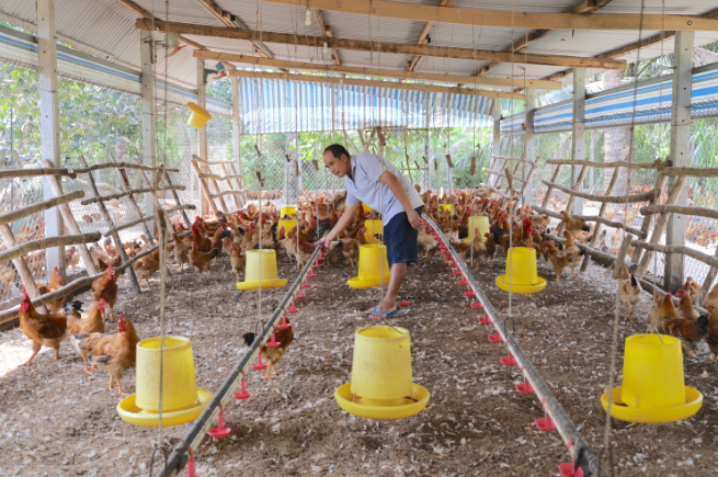 “Mỗi tháng tôi xuất chuồng từ 1.500-2.000 con gà, trọng lượng bình quân 1,8kg/con, diện tích chuồng trại 2,4 ha. Giá bán gà thịt cho thương lái là 80.000 đồng/kg. Do sức mua từ năm ngoái đến nay giảm nên tôi không có ý định tăng đàn. Giá cả con giống dao động tuỳ theo thời vụ, xung quanh ngưỡng 17.000 đồng/con, sau 1 ngày tuổi gà được tiêm vaccine phòng ngừa 5 loại bệnh nên thuận lợi cho những người mới bắt đầu nuôi. Thời gian nuôi khoảng 4 tháng xuất chuồng”- anh Cường chia sẻ.