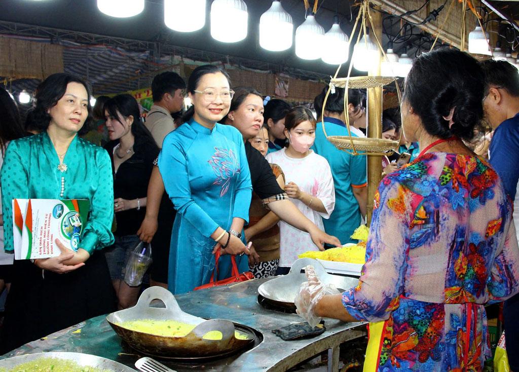 | Đại biểu tham quan gian hàng bánh dân gian Nam Bộ. |