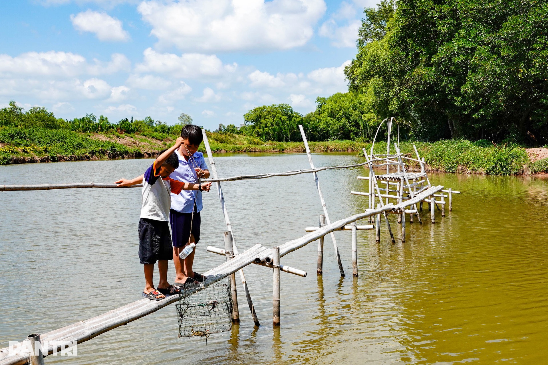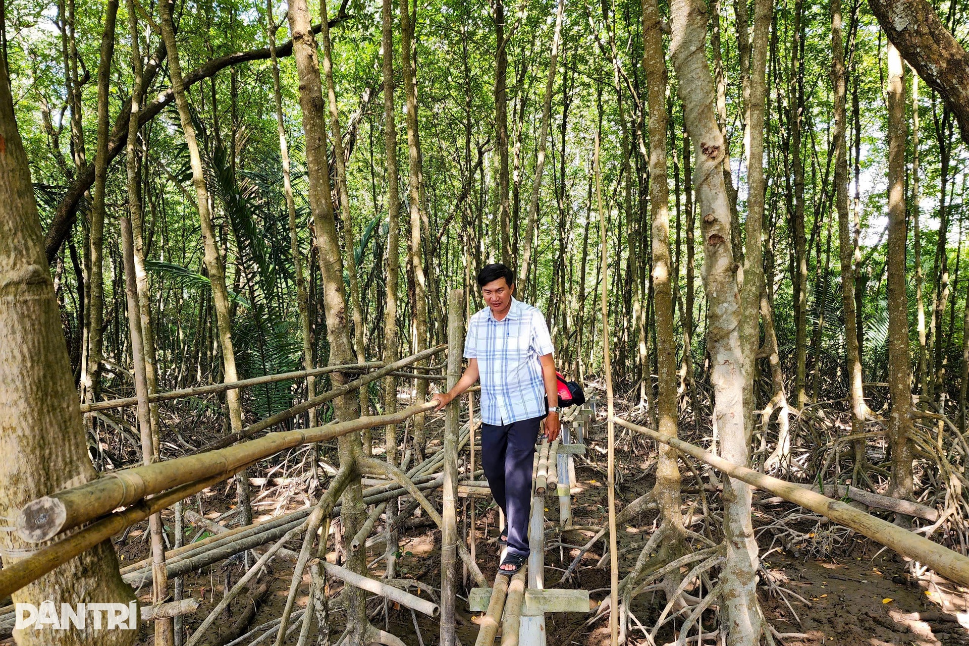 Lối đi vào rừng là chiếc cầu tre được bắc cao hơn mặt bùn khoảng 1m, tạo nên một trải nghiệm độc đáo cho du khách.
