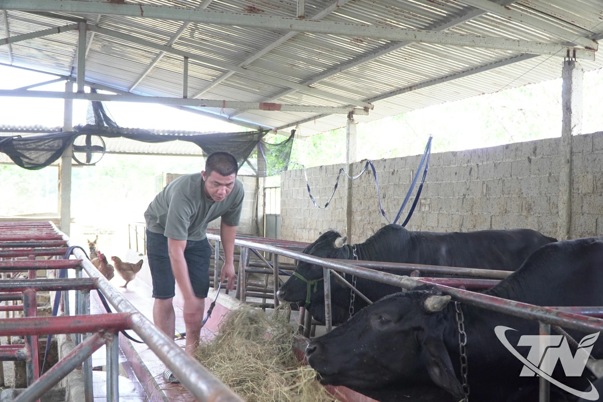 Anh Lý Văn Toàn ở tổ 7, phường Gia Sàng, chăm sóc những con bò còn sót lại của gia đình sau mưa lũ. |