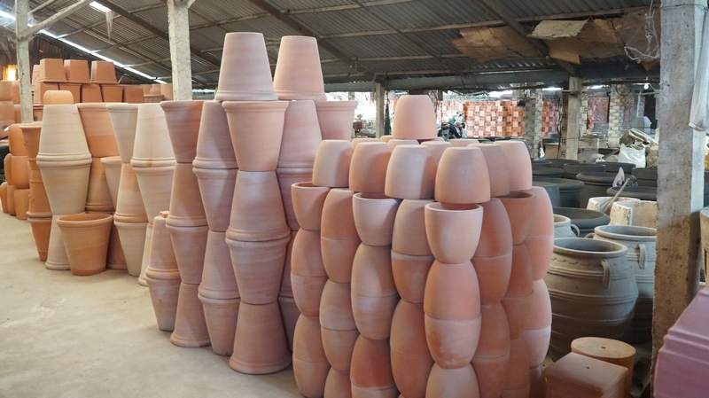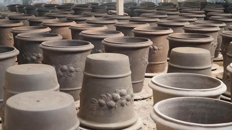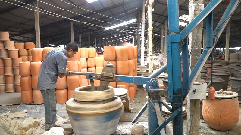 Tại Công ty TNHH Mỹ nghệ Thanh Đức, được hỗ trợ thiết bị máy móc và thiết kế mẫu mã. Gồm hỗ trợ máy trộn đất và máy xoay chậu cỡ lớn, về thiết kế mẫu mã là thiết kế dạng lu, bình, chậu mới.