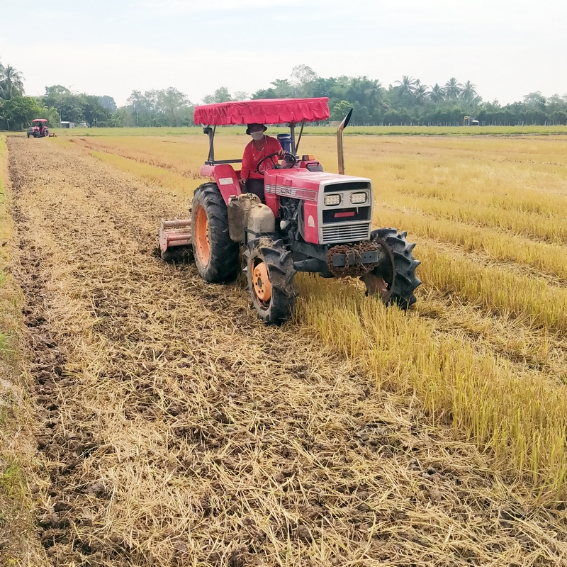 | Giá lúa Đông Xuân 2024-2025 thấp, nhưng một số nơi nông dân vẫn cày xới, chuẩn bị gieo sạ vụ lúa Hè Thu. Ảnh chụp tại xã Mỹ An, huyện Mang Thít vào ngày 9/3/2025. |