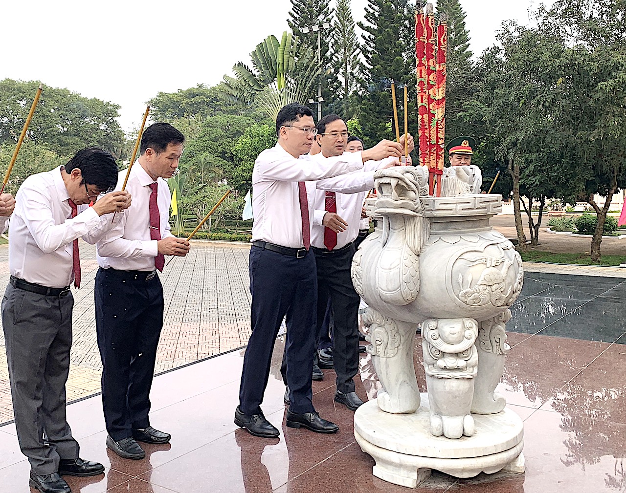 | Lãnh đạo Huyện ủy, UBND huyện Châu Đức viếng Tượng đài Chiến thắng Bình Giã. |