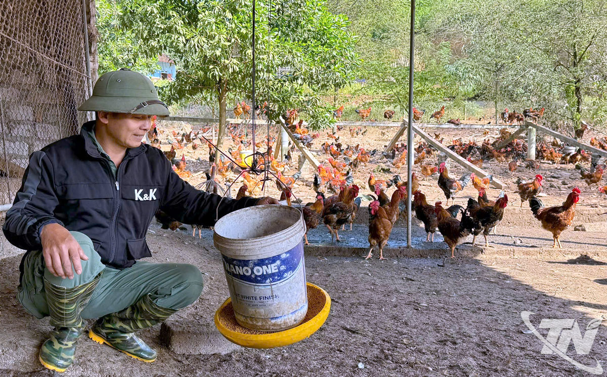 | Mô hình nuôi gà thương phẩm của gia đình anh Trần Văn Ngợi, ở xóm Bảo Nang (xã Trại Cau). |
