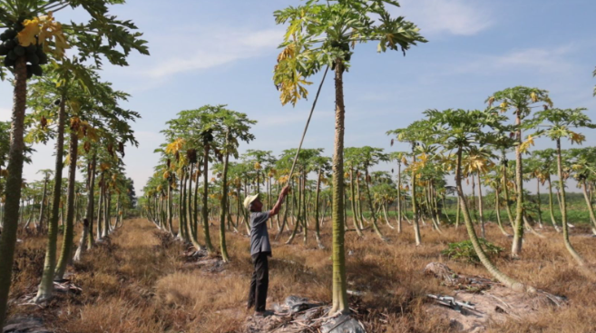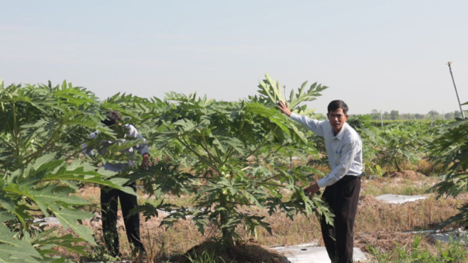 Riêng cây đu đủ, tính đến thời điểm này, gia đình ông trồng được hơn 3 năm theo kiểu gối đầu, diện tích này vừa hết vòng đời thì diện tích khác đến kỳ thu hoạch. Trung bình mỗi cây từ lúc cho trái đến lúc xả vườn cho khoảng 80kg trái, giá thu mua của Cofidec tại vườn là 5.000 đồng/kg, sau khi trừ hết chi phí đầu tư, lợi nhuận thu về khoảng 250 triệu đồng/ha.