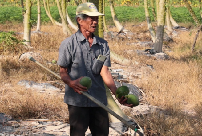 Ông Đặng Văn Quơi thu hoạch đu đủ.