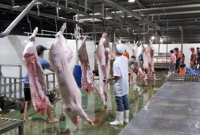 Gia súc được mổ tại nhà máy giết mổ động vật tập trung được bảo đảm vệ sinh an toàn thực phẩm, vệ sinh thú y. Ảnh: V.Đ.T.