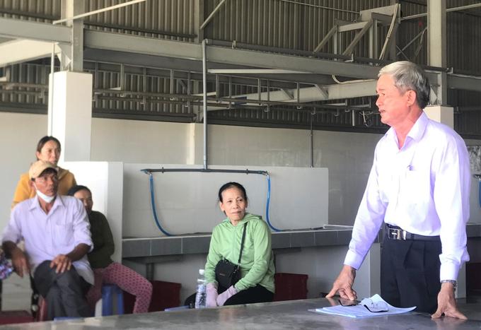 Ông Phan Văn Khiêm (đứng), Trưởng phòng NN-PTNT huyện Tuy Phước nói về những lợi ích của việc chuyển lò mổ nhỏ lẻ vào nhà máy giết mổ tập trung. Ảnh: V.Đ.T.