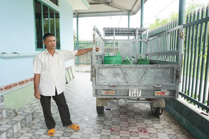 Ông Nguyễn Văn Minh, chủ một lò mổ ở xã Nhơn Lộc (thị xã An Nhơn) mua xe tải nhỏ để vận chuyển heo về nhà máy giết mổ tập trung. Ảnh: V.Đ.T.